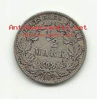 Saksa 1/2 Mark 1907 A - kolikko hopeaa