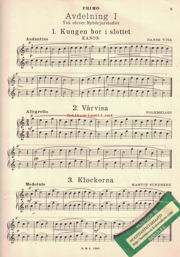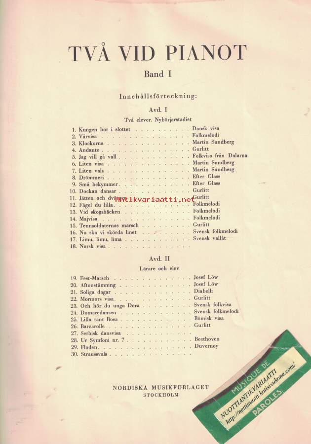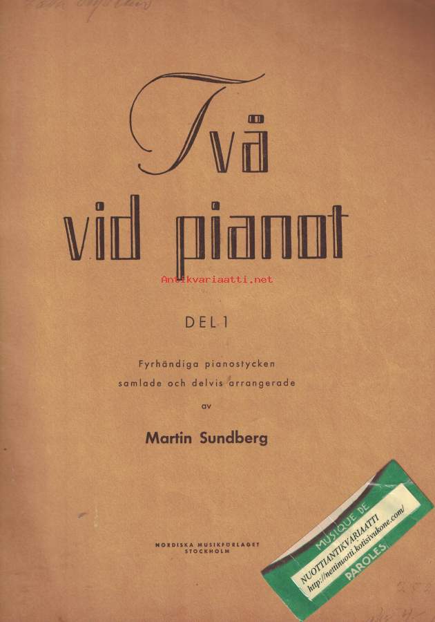Två vid pianot Del 1 : Fyrhändige pianostycken samlade och delvis arrangerade av Martn Sundberg