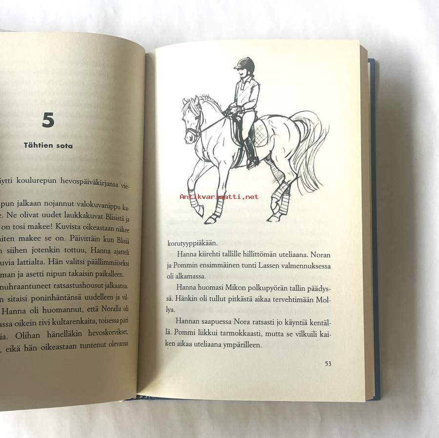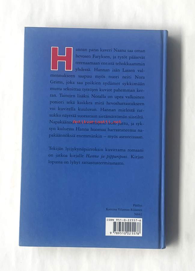 Hannan isän valmennukseen saapuu nuori ratsastaja, jolla on upea hevonen. Tämä aiheuttaa Hannassa kateutta ja saa hänet miettimään asenteitaan. Kirjassa on hieno lyijykynäkuvitus sekä lopussa ratsastusaiheinen sanasto.