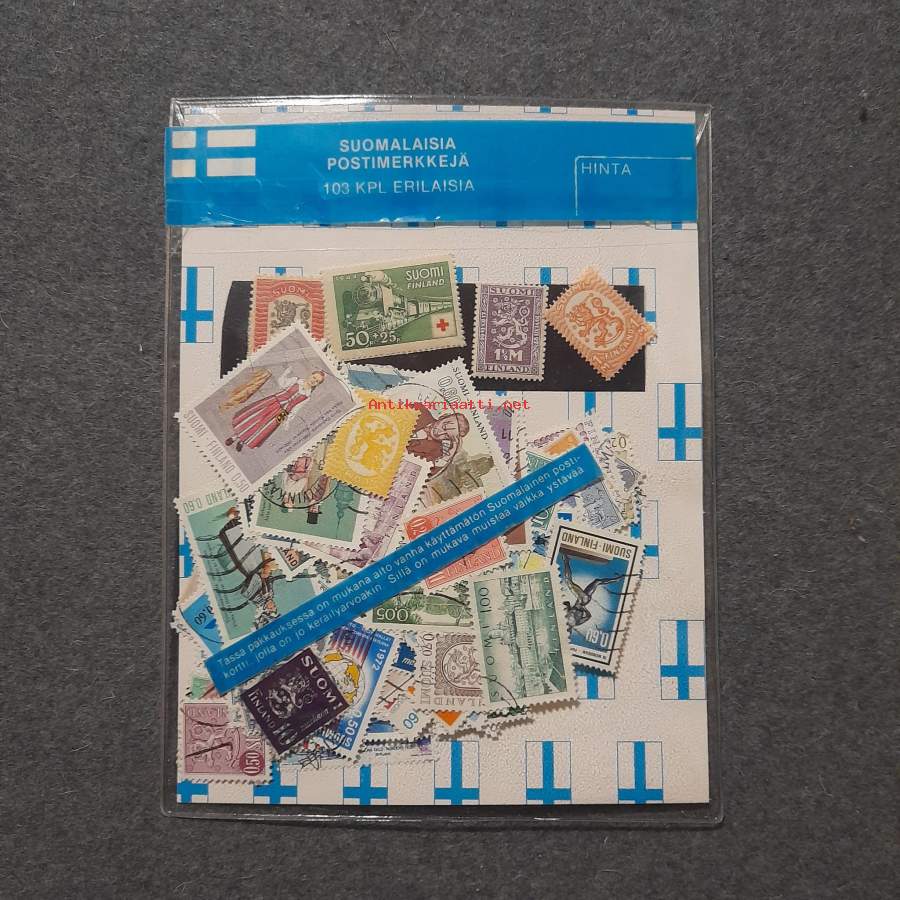 Suomalaisia postimerkkejä 103 kpl erillaisia + kortti