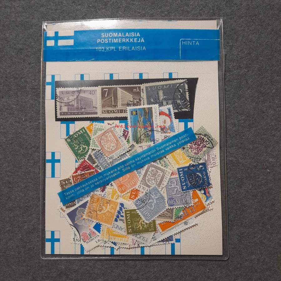 Suomalaisia postimerkkejä 103 kpl erillaisia + kortti
