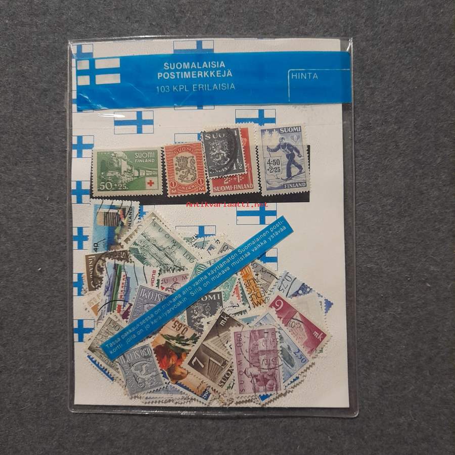 Suomalaisia postimerkkejä 103 kpl erillaisia + kortti
