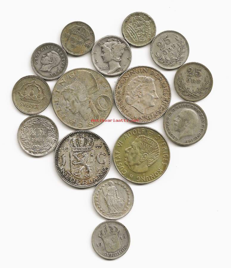 Ulkomaisia hopeakolikoita 15 kpl / 53 g - kolikko