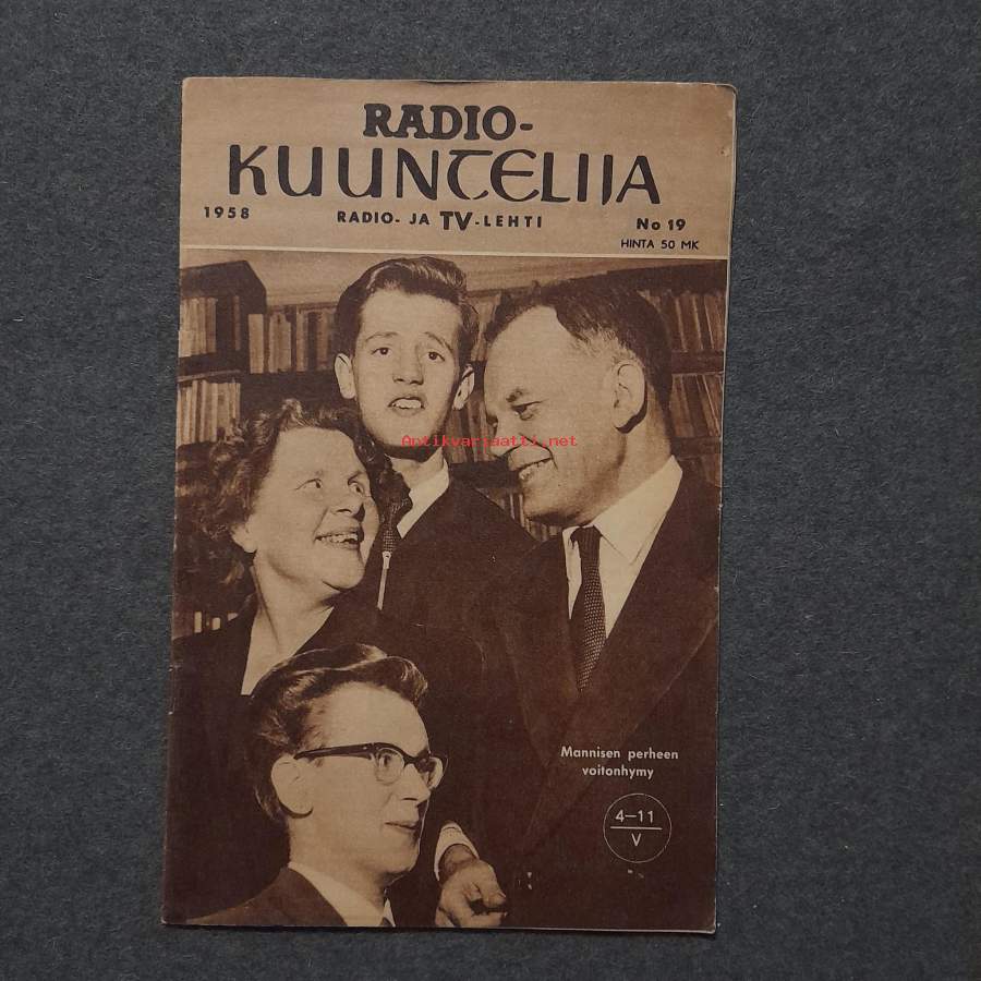 Radio-Kuuntelija 1958 Oy YleisradioAB:n täydellinen viikko-ohjelmalehtinen.