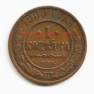 Venäjä 1 kop 1908 ulkomainen kolikko