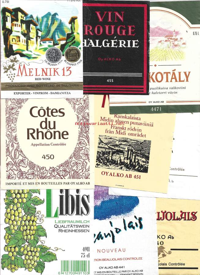 Alkon vuosikertaviinejä - viinietiketti viinaetiketti 4 eril