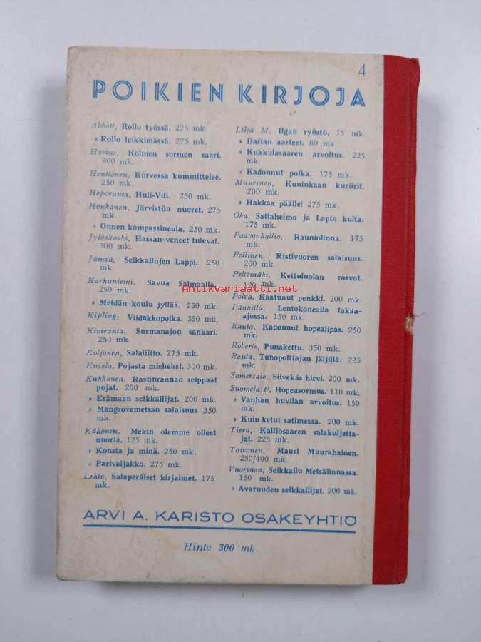 Tyydyttävä. Tarkempi kuntoluokka: K2- ; Hieman kulumaa kansissa, selkämyksessä aavistus vinoutta. takakannessa ja parilla viimeisellä sivulla pienoinen repeämä