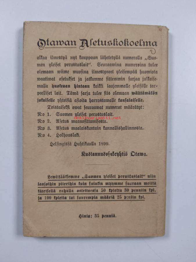 Muu(t) tekijä(t): J. K. PaasikiviSarja: Otavan asetuskokoelma 1Asiasanat: perustuslait, grundlagar