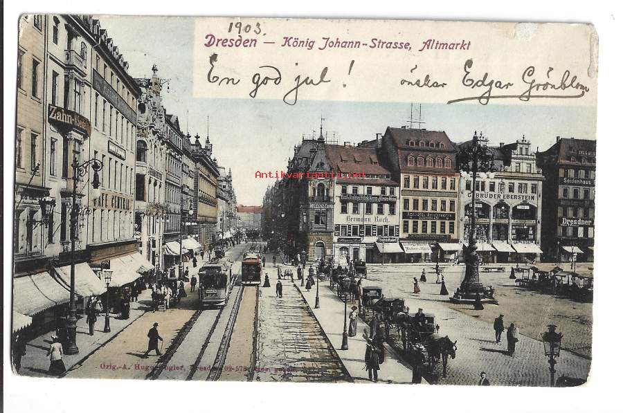 Dresden- paikkakuntakortti, paikkakuntapostikortti postikorttikulkenut 1903 merkki rikki