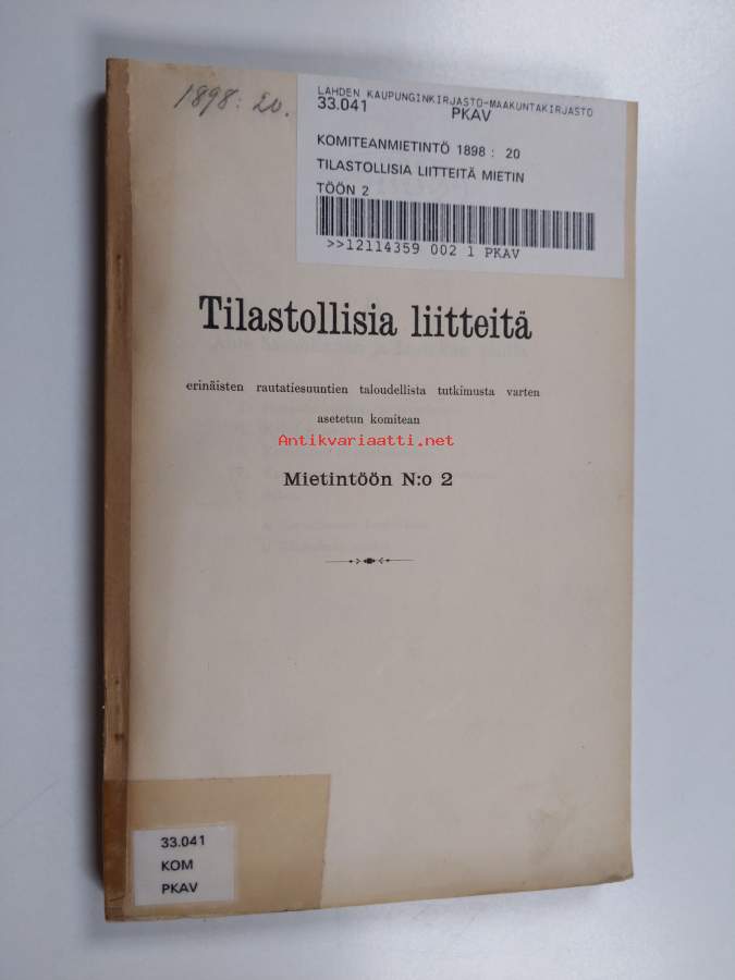 Tilastollisia liitteitä erinäisten rautatiesuuntien taloudellista tutkimusta varten asetetun komitean mietintöön n:o 2
