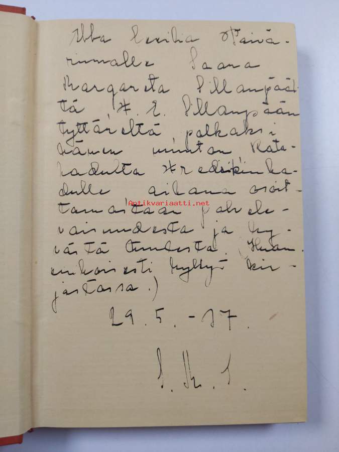 Hyvä. Tarkempi kuntoluokka: K3+ ; Hieman kulumaa kansissa, selkämyksessä hieman vinoutta. etulehdellä Saana Margareta Sillanpään signeeraama saateteksti/omiste