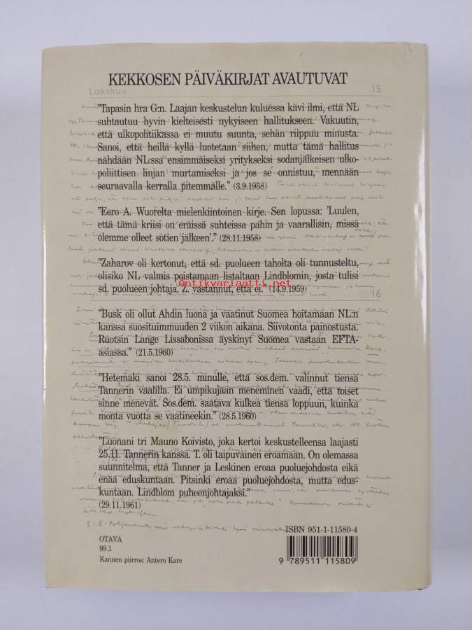 Urho Kekkonen-paketti (11 kirjaa) : Urho Kekkonen1936-1944 Myrrysmies ; Urho Kekkonen 1944-1950 Vonkamies ; Urho Kekkonen 1950-1956 Kuningastie ; Urho Kekkonen 19...