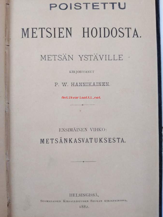 Metsien hoidosta : metsän ystäville, vihko 1 : Metsänkasvatuksesta