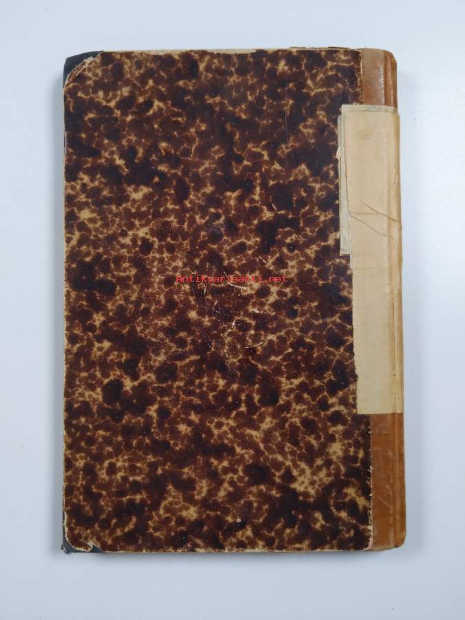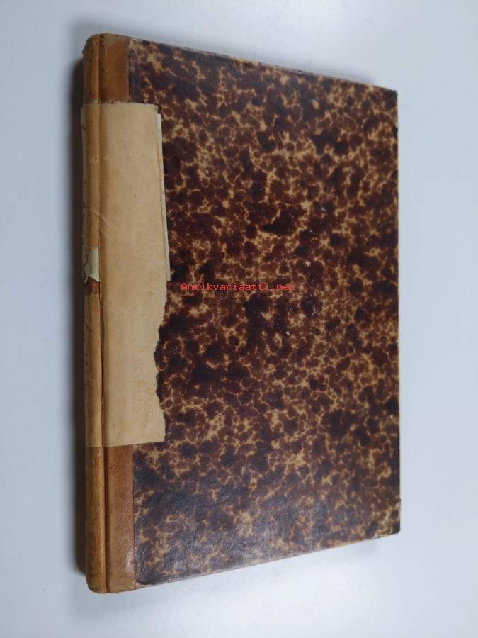 Hyvä. Tarkempi kuntoluokka: K3- ; Hieman rispaantumaa reunoilla ja kulmissa, selkämyksessä aavistus vinoutta. kaksi teosta yhteen sidottuna ; toisen teoksen teksti fraktuuraa