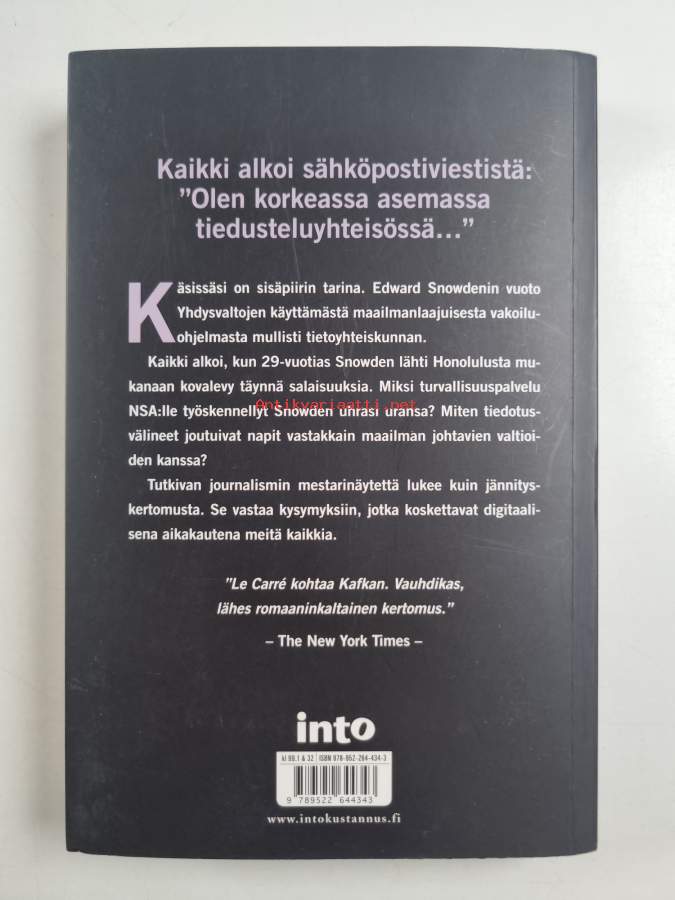 Alkuteos: The Snowden filesAsiasanat: henkilöhistoria, vakoilijat, tietovuoto, hakkerit