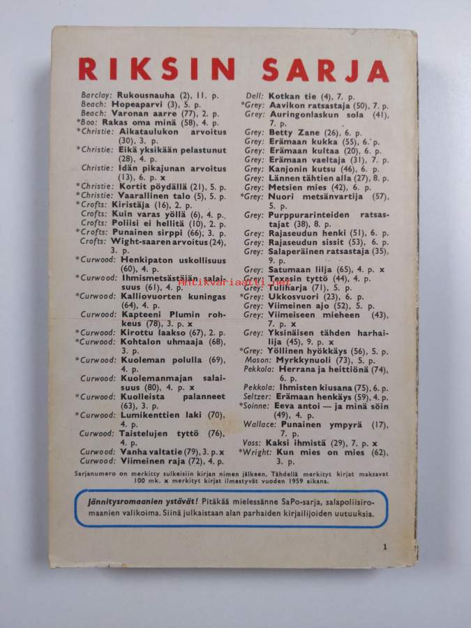 Sininen kuu, 1954. 2. painos. Joka kodin tähtikirjasto N;o 18.Baskulin lentokentällä Intiassa nousee matkustajakoneeseen pieni ihmisryhmä, jonka Kauko-Idän
