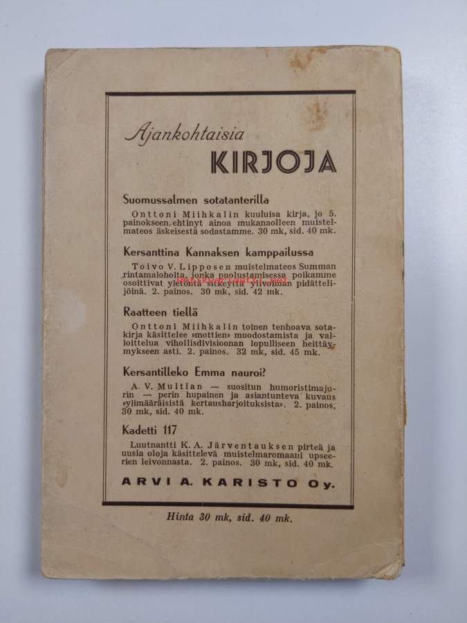 Kadetti - tulitikkuetiketti tulitikkuaskin kansi
