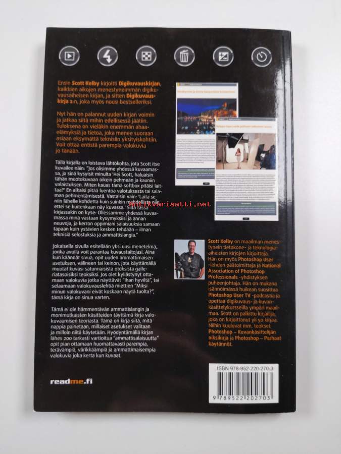 Muu(t) tekijä(t): Marjo PeltoniemiSarja: Digikuvauskirja 3Alkuteos: The digital photography book. 3Asiasanat: urheilu, valokuvaus, valokuvat, valo, digitaalitekniikka, ympäristö, kuvankäsittely, digitaalikuvaus, henkilövalokuvaus, salamavalolaitteet, studiot, objektiivit