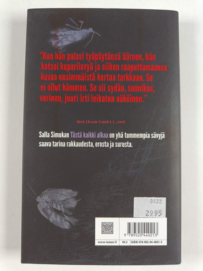 Uusi tai lähes uutta vastaava. Tarkempi kuntoluokka: K5- ; Takana vanha hintalappu. Kansipaperin kunto: pienoista kulumaa reunoilla, muuten erinomainen