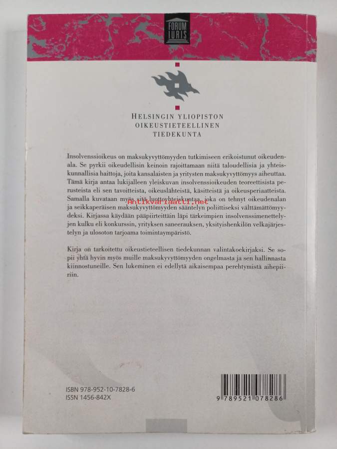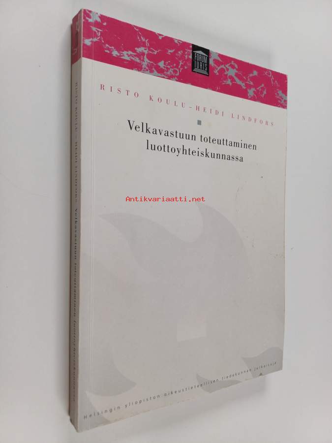 Sarja: Forum iurisAsiasanat: lainsäädäntö, velat, konkurssi, velkajärjestely, velkaantuminen, yhteiskunnalliset vaikutukset, oikeustiede, ulosotto, taloudelliset vaikutukset, luottotiedot, maksukyvyttömyys, insolvenssioikeus, yrityssaneeraus, saatavien perintä, luottotietolaki