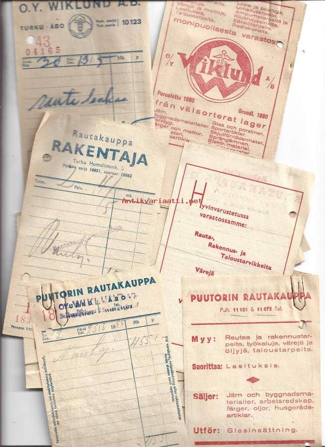 1950 luvun Paragon yms kuitteja n 35 kpl paljon samoja firmalomake
