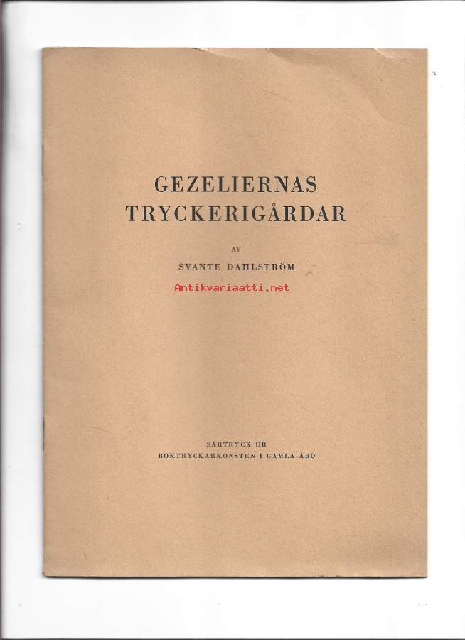 Gezeliernas tryckerigårdar1942kuvausSärtr. ur Boktryckarkonsten i Gamla Åbo.Sivujen lukumäärä[2], 13 s.