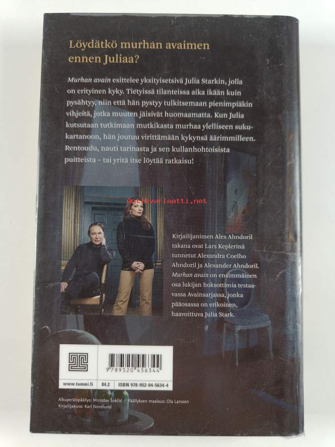 Sarja: AvainsarjaAlkuteos: Jag kommer att hitta nyckelnAsiasanat: murha, suvut, valokuvat, kartanot, Ruotsi, perheenjäsenet, yksityisetsivät, perhesalaisuudet, muistinmenetys, Norlanti, Kepler, Lars Kepler