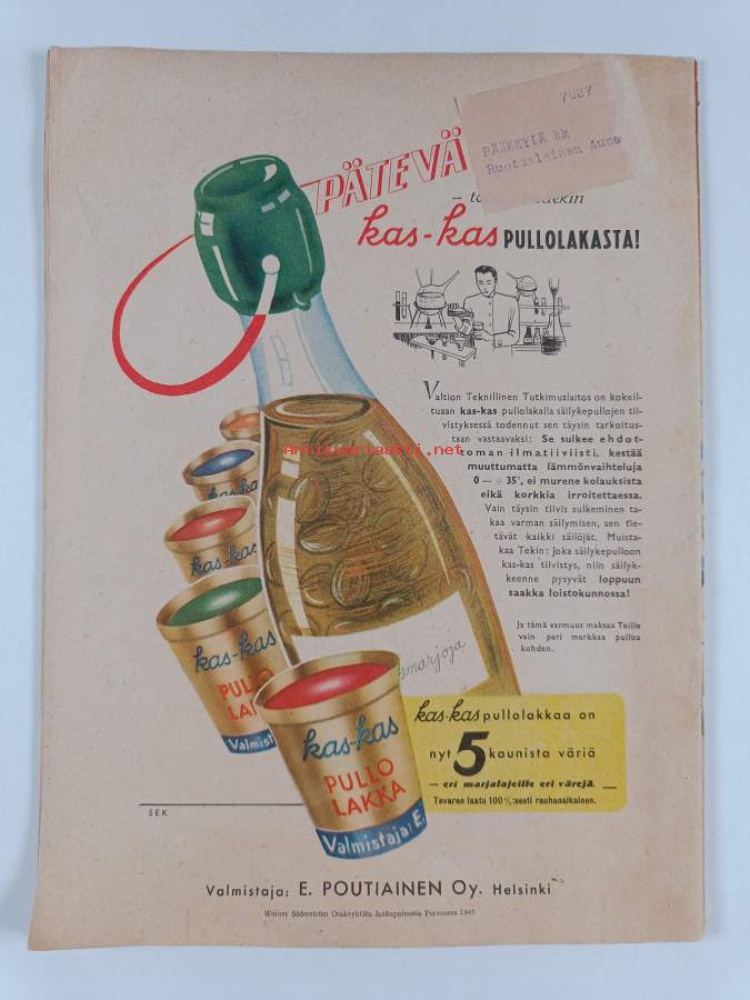 Hyvä. Tarkempi kuntoluokka: K3- ; Pienoista repeämää etukannen yläkulmassa, pientä kulumaa