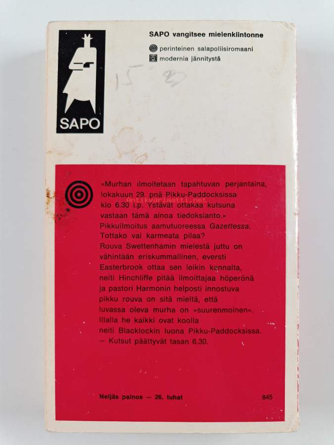 Muu(t) tekijä(t): Eila PajastieSarja: Sapo 79Alkuteos: A murder is announcedAsiasanat: Neiti Marple