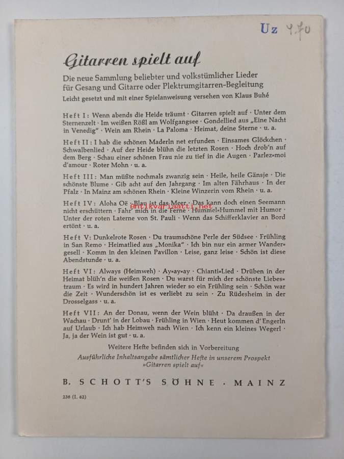 Gitarren spielt auf - beliebte und volkstümliche Lieder für Gesang und Gitarre heft 1-7 (Nro 6 puuttuu)