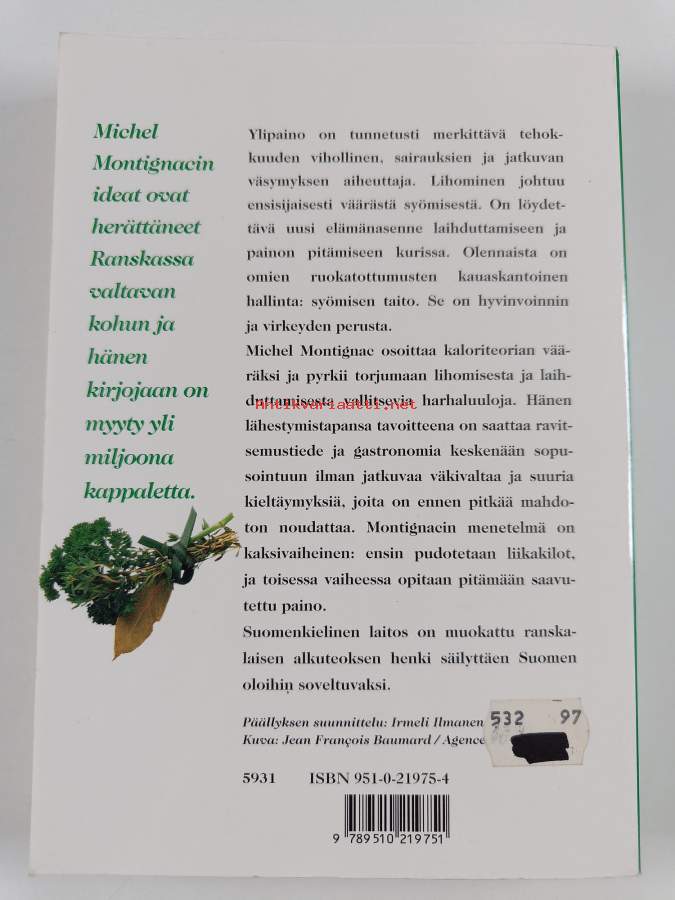 Syön hyvin ja siksi laihdunJe mange donc je maigris!KirjaMontignac, Michel ; Henkilö Mannerkorpi, Jukka,