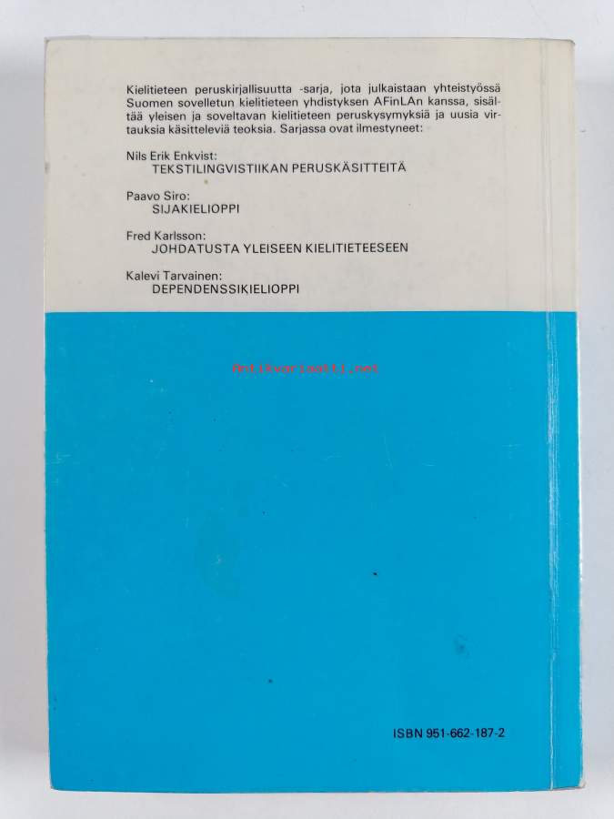 Tyydyttävä. Tarkempi kuntoluokka: K2- ; Hieman tahraisuutta kansissa, hieman kulumaa, kontaktimuovipäällystys, sivuilla lyijykynämerkintöjä