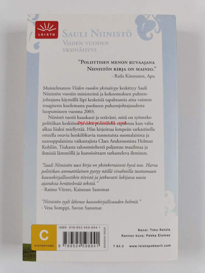 Erinomainen. Tarkempi kuntoluokka: K4- ; Aivan pienoista rispaantumaa selkämyksen yläkulmassa