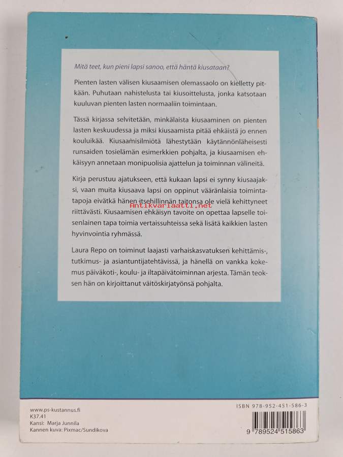 Merkinnät: omistajamerkintäAsiasanat: ennaltaehkäisy, tunteet, sosiaalinen vuorovaikutus, kotikasvatus, kasvatus, aggressiot, esikouluikäiset, sosiaaliset taidot, kiusaaminen, sosiaaliset suhteet, ryhmäkäyttäytyminen, koulukiusaaminen, leikki-ikäiset, päivähoito, varhaiskasvatus, päiväkodit, ehkäisy, aggressiivisuus, lapset (ikäryhmät), gruppbeteende, känslor, barn (åldersgrupper), fostran, småbarnspedagogik, social kompetens, dagvård, mobbning, Social interaktion, hemuppfostran, aggressivitet, förebyggande, daghem, sociala relationer, aggressioner, barn i förskoleåldern, barn i lekåldern, skolmobbning, prevention