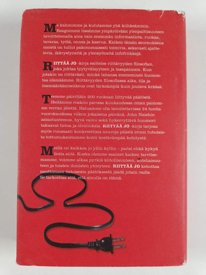 Muu(t) tekijä(t): Heli NaskiAlkuteos: Enough : breaking free from the world of moreAsiasanat: elämäntapa, elämänlaatu, hyvä elämä, tyytyväisyys, kulutus, riittävyys, rajoitukset