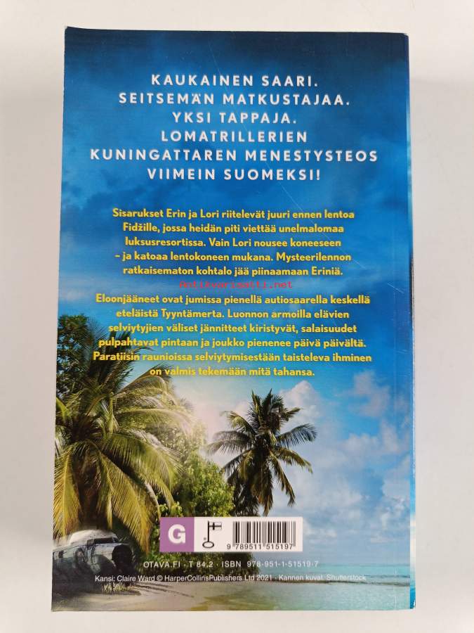 Alkuteos: The CastawaysAsiasanat: onnettomuudet, murha, kaunokirjallisuus, matkat, selviytyminen, haaksirikot, lentokoneet, jännityskirjallisuus, sisaruus, Tyynimeri, Fidzi