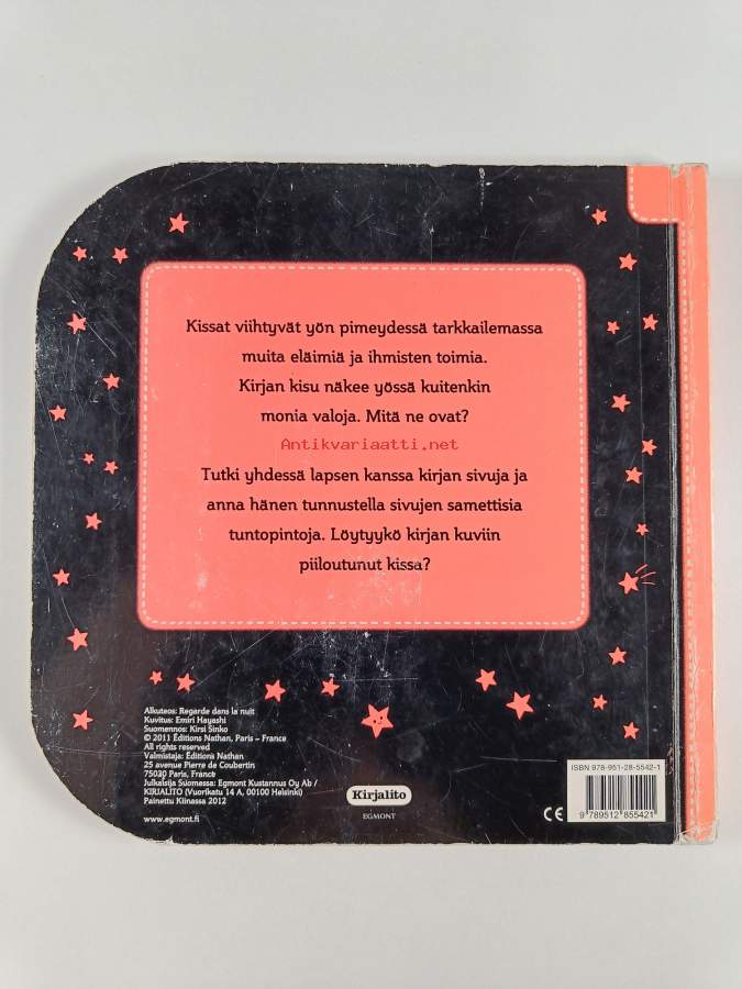 Muu(t) tekijä(t): Kirsi SinkoAlkuteos: Regarde dans la nuitAsiasanat: kissa, lastenkirjallisuus, numerot, yö, laskeminen, kuvakirjat, paksulehtiset kirjat, kuvatehostekirjat, koskettelukirjat