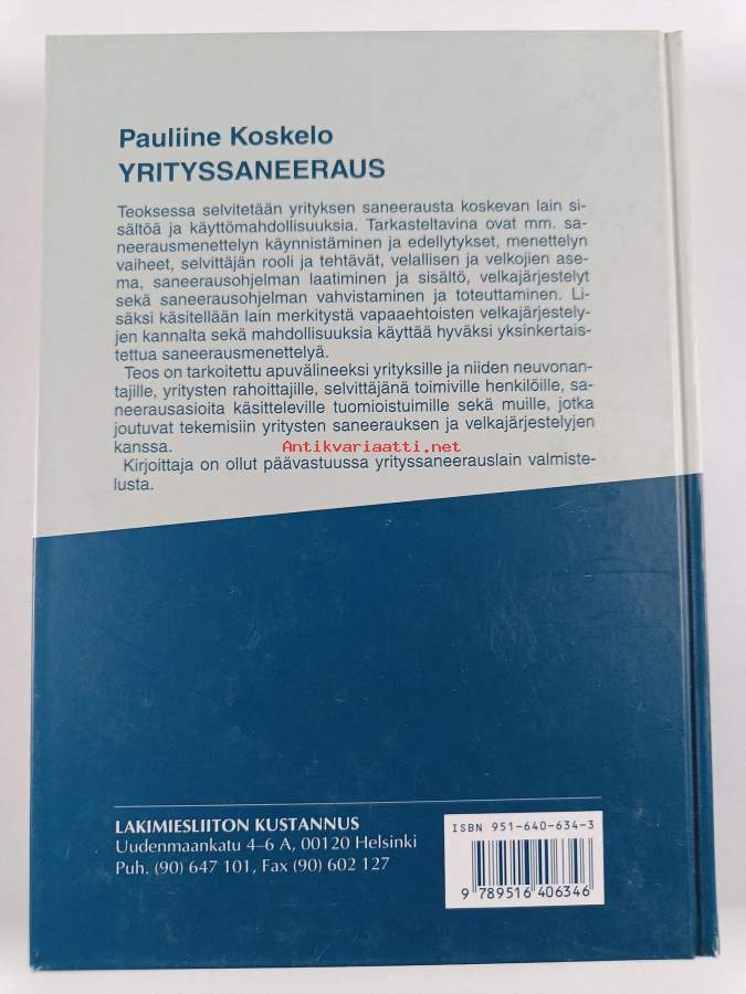 Merkinnät: omistajamerkintä (leima)Asiasanat: lainsäädäntö, velat, saneeraus, yrityssaneeraus