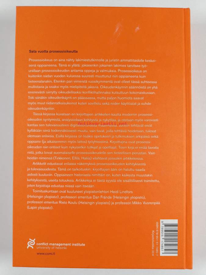 Muu(t) tekijä(t): Risto Koulu, Heidi Lindfors ym.Asiasanat: tutkimus, oikeudenkäynti, opetus, professorit, sovittelu, oikeustiede, rikosprosessi, siviiliprosessi, prosessioikeus, tiedepolitiikka, vaihtoehtoinen riidanratkaisu, kansainvälinen prosessioikeus, digitalisaatio, helsingin yliopisto, oikeuskulttuuri, assistentit, lakimiehet, juhlajulkaisut, lakimieskoulutus