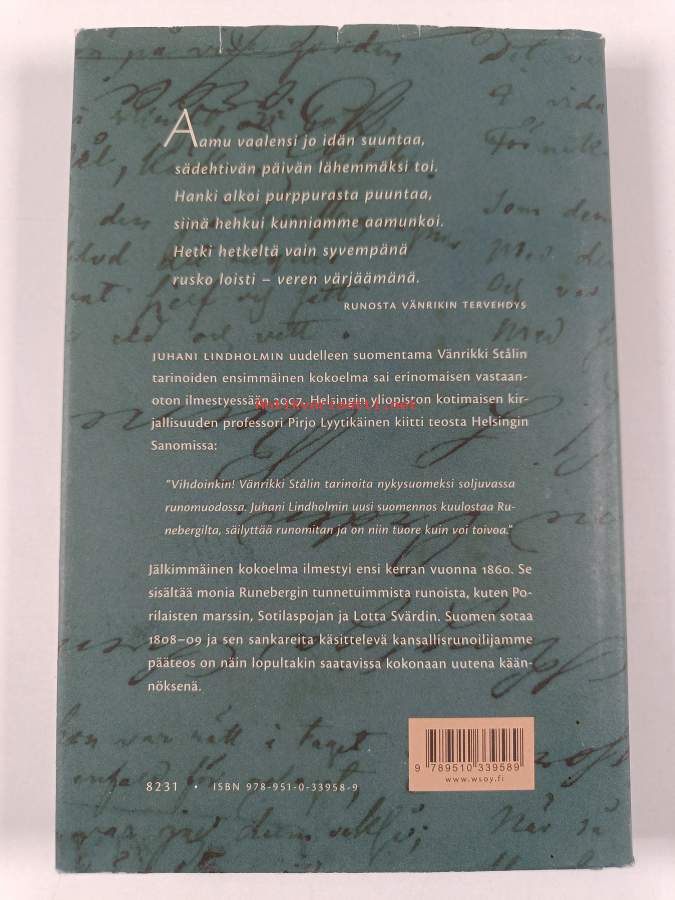 Vänrikki Stålin tarinat - Ensimmäinen kokoelma, 2007.Seis! Nyt kuulkaa! Harjun päällä hurrataan.Näkyy ratsastaja. Kuka kumma?Mikä syynä