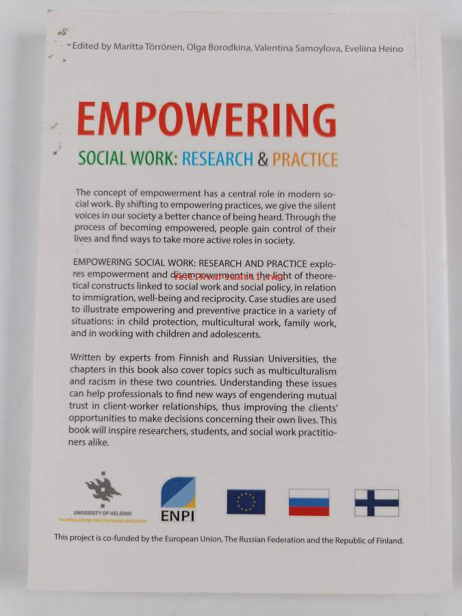 Muu(t) tekijä(t): Valentina Samoylova, Eveliina Heino ym.Asiasanat: tutkimus, lapset, lastensuojelu, hyvinvointi, sosiaalityö, maahanmuuttajat, monikulttuurisuus, nuorisotyö, sosiaalipolitiikka, käytäntö, perhetyö, lapsityö, voimaantuminen, lapset (ikäryhmät), maahanmuuttajatyö, empowerment, social work, social service
