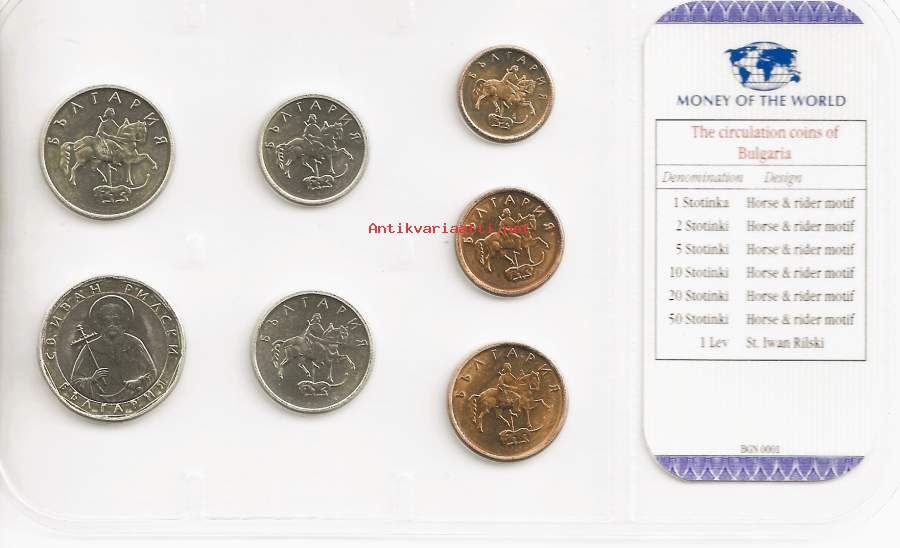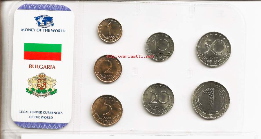 Bulgaria 1,2,5,10,20,50 Stotinka 1 Lev 7 kpl rahasarja 1999-2002 ulkomainen kolikko