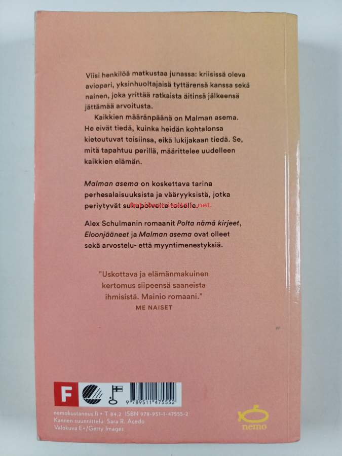 Muu(t) tekijä(t): Jaana NikulaAlkuteos: Malma station.Asiasanat: matkat, sukupolvet, junat, epäoikeudenmukaisuus, perhesalaisuudet