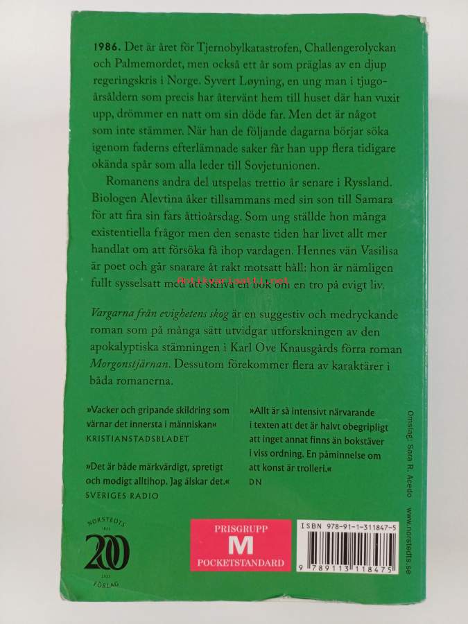 Muu(t) tekijä(t): Staffan SöderblomAlkuteos: Ulvene fra evighetens skogAsiasanat: föräldrar-barn-förhållande, fäder, diktare, familjehemligheter, återkomst, odödlighet, barndomshem, världsåskådning, söner, biologer