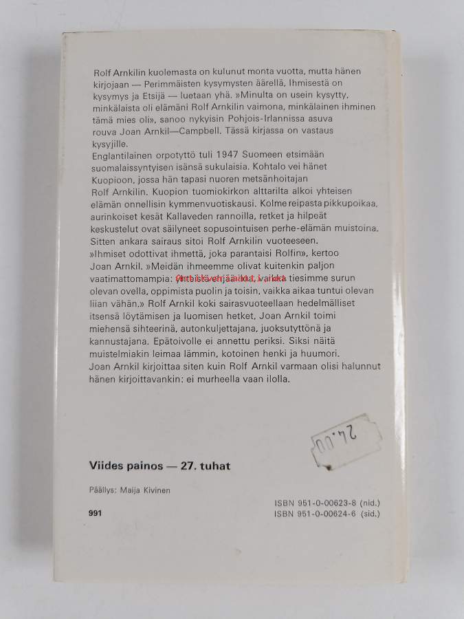 Ei murheella vaan ilollaKirjaHenkilö Arnkil-Campbell, Joan, 1926- ; Henkilö Karjalainen, Elina, 1927-2006WSOY 1972