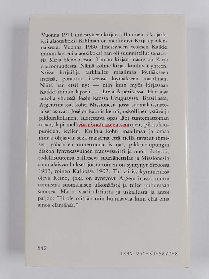 Hyvä. Pienoista kolhua selkämyksen alapäässä. Kansipaperin kunto: pientä kulumaa