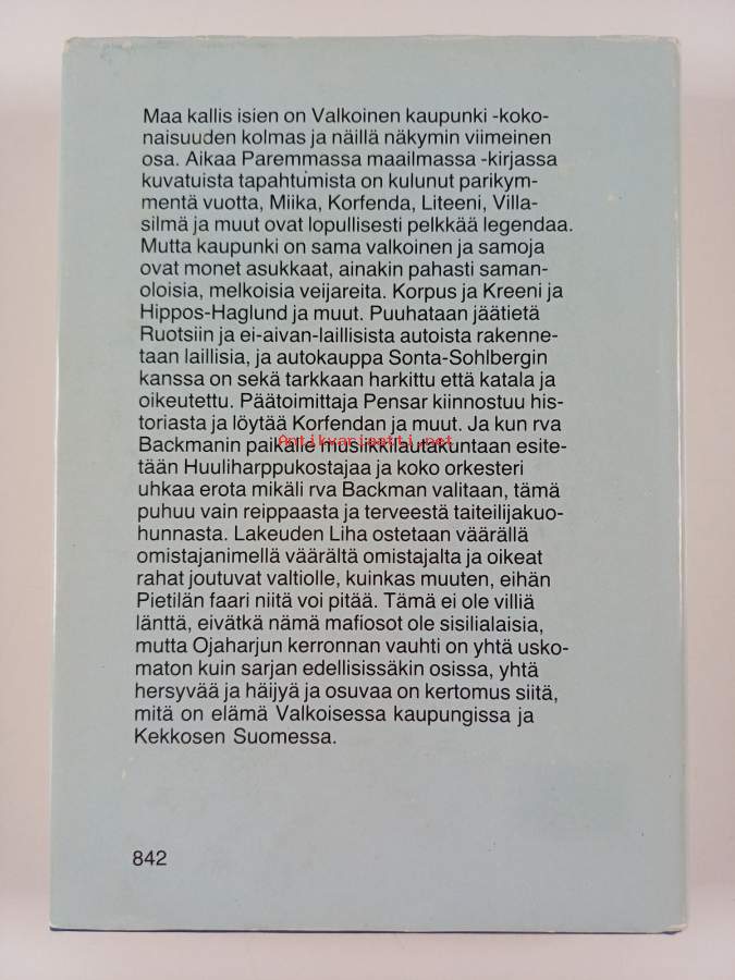 Hyvä. Pienoista kulumaa kansissa, pienoista kolhua selkämyksen päissä. Kansipaperin kunto: jonkin verran kulumaa/pienoisia repeämiä