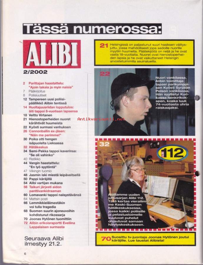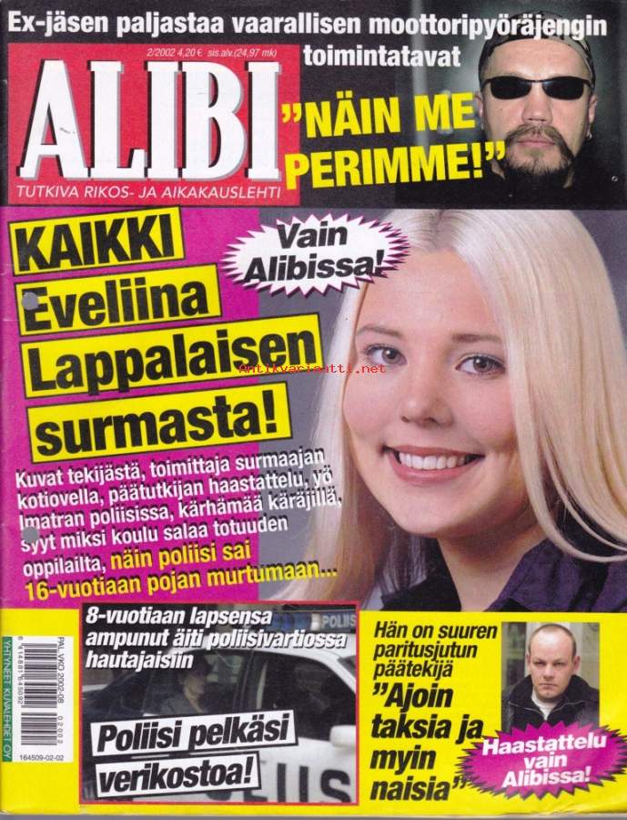 Alibi 2002 N:o 2. Kaikki Eveliina Lappalaisen surmasta! Ajoin taksia ja myin naisia. Lomavanki tappoi naisystävänsä.