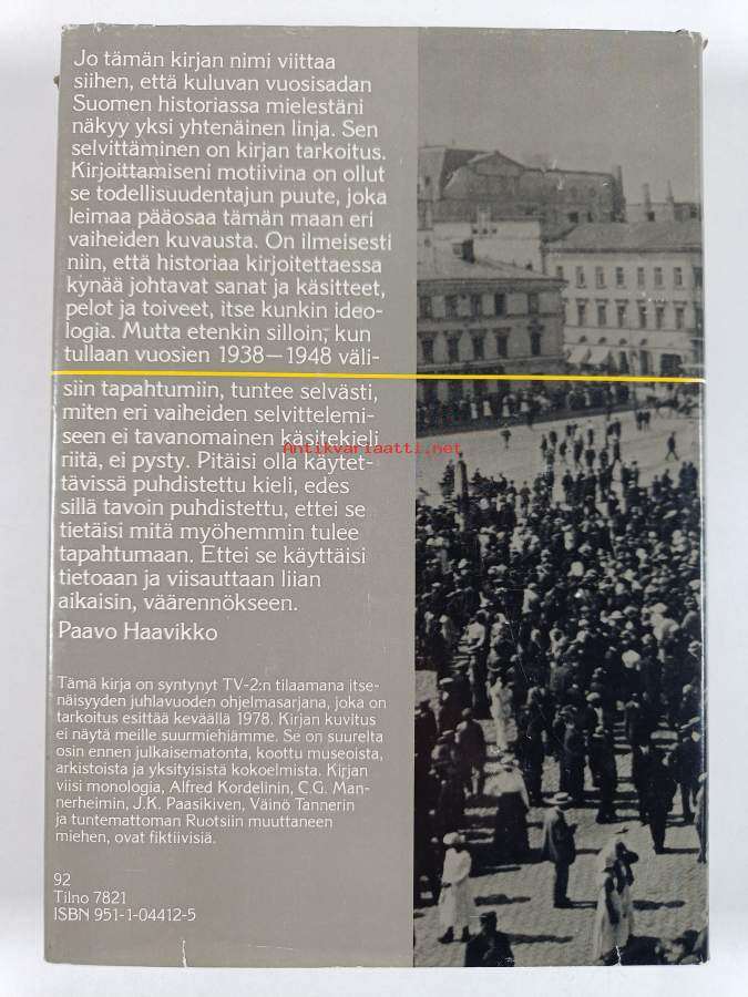 Kansakunnan linja - Kommentteja erään tuntemattoman kansan tuntemattomaan historiaan 1904-1975. 1978, 3.painos.