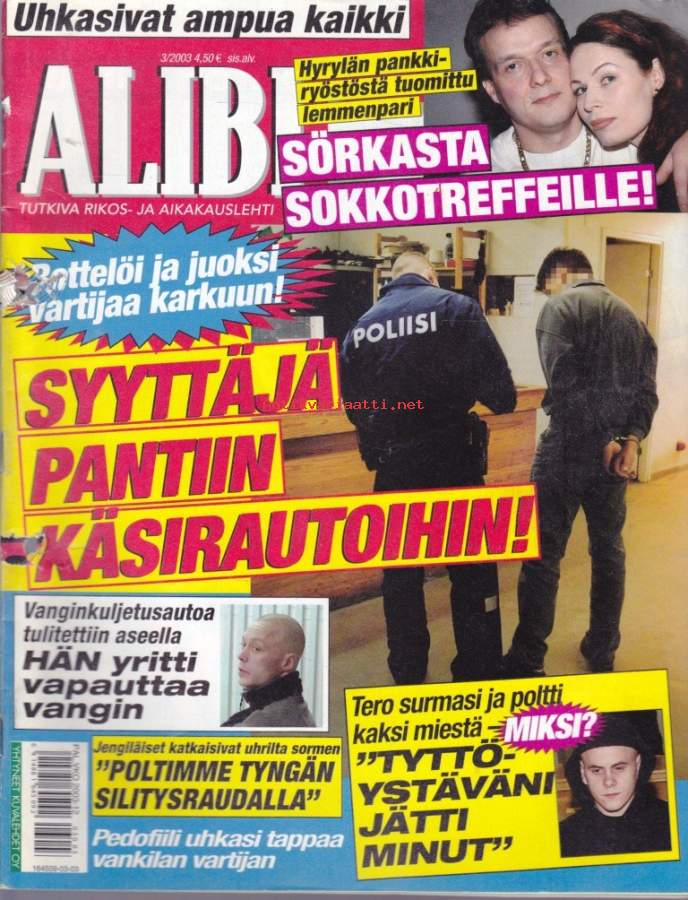 Alibi 2003 N:o 3. Tero surmasi ja poltti kaksi miestä. Syyttäjä pantiin käsirautoihin. Kaikki viime vuoden lapsisurmat.